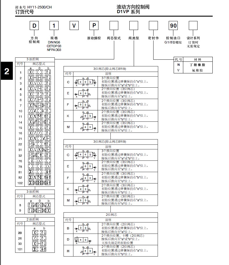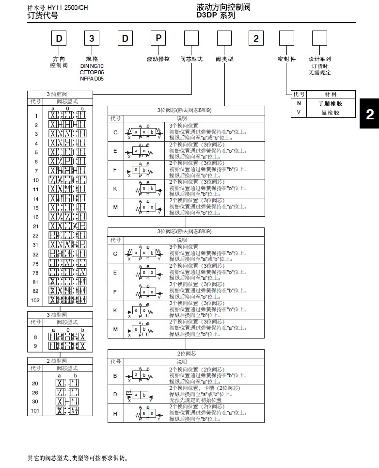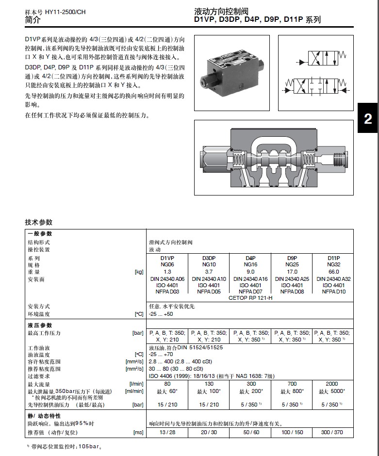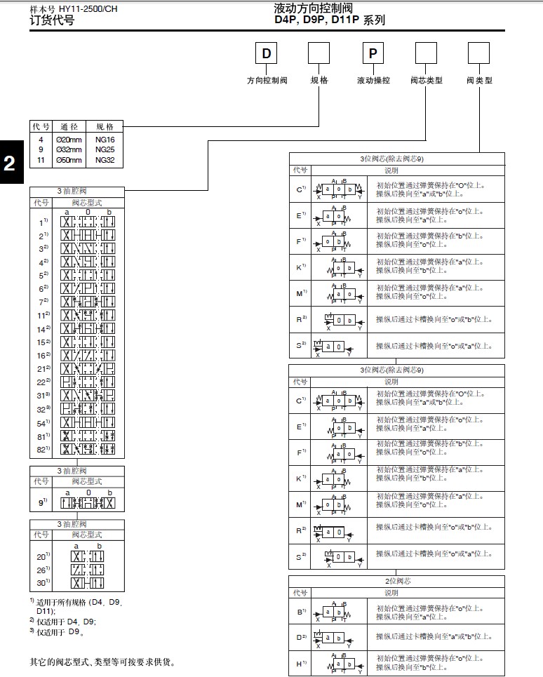 PARKER D1VP, D3DP, D4P, D9P, D11P系列液动方向控制阀部分型号:
