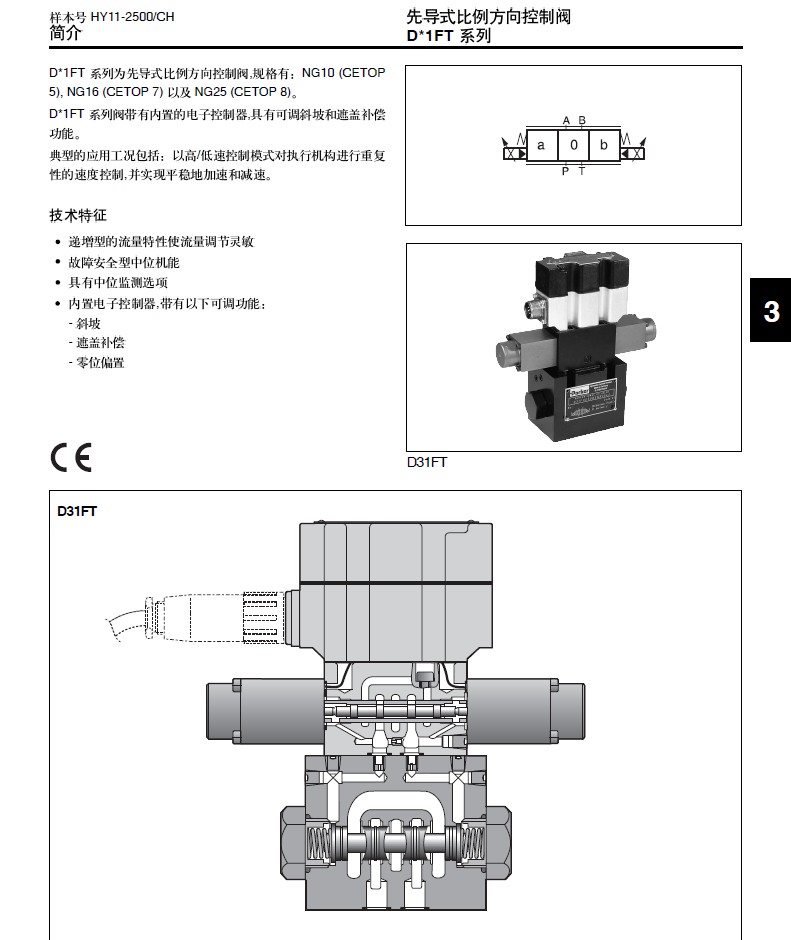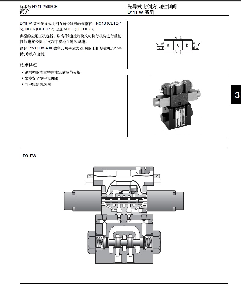 该阀(D*1FW)采用PWD-400功率放大器进行电控或将集成的电子元件插装在阀上组成一体(D*1FT)。