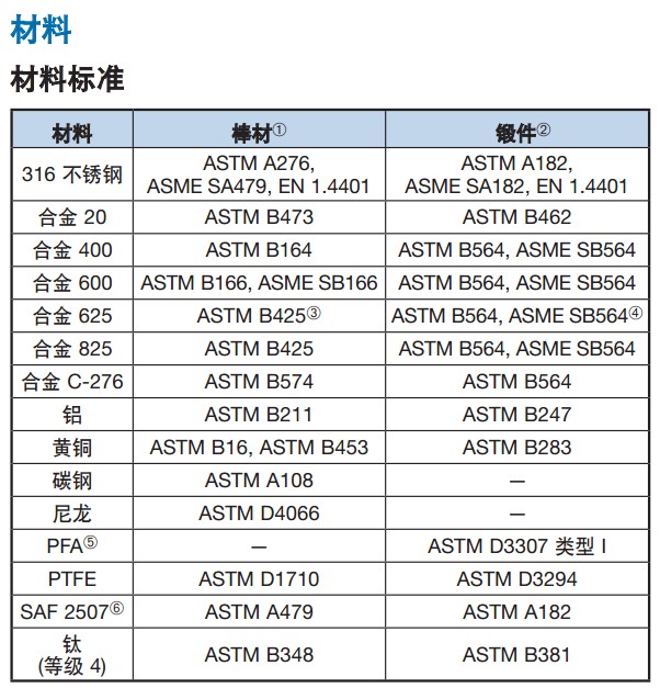 ■ 法兰类型符合 ASME、DIN、EN 和 JIS 标准